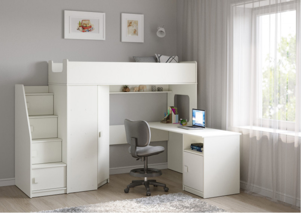 Учебная зона со столом под спальным местом открывает возможности для письменных работ, а также здесь удобно расположить ноутбук.