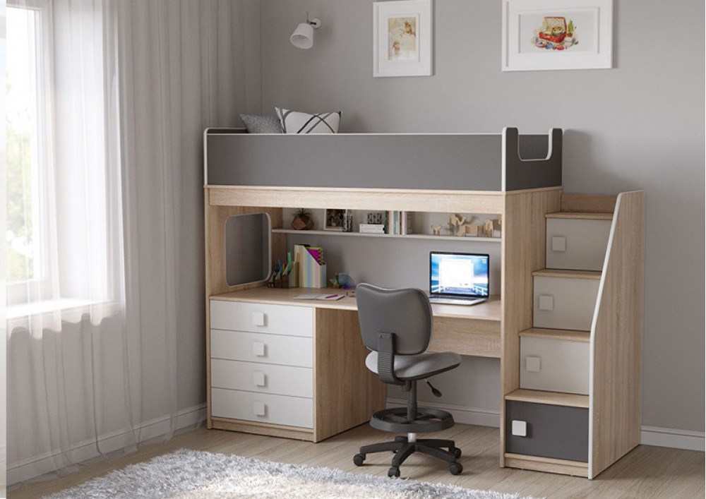 Учебная зона со столом под спальным местом открывает возможности для письменных работ,а также здесь удобно расположить ноутбук.