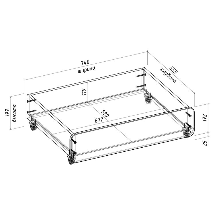 габариты (Д×Ш×В): 740 × 553 × 197